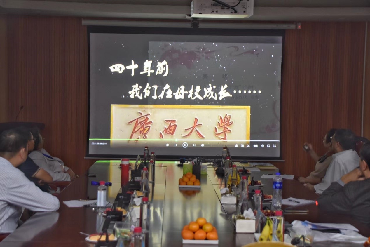 党委书记覃宪儒带领班子成员及校友工作相关人员,热烈欢迎数学77级校友重返母校,并隆重举行毕业40年座谈会。
