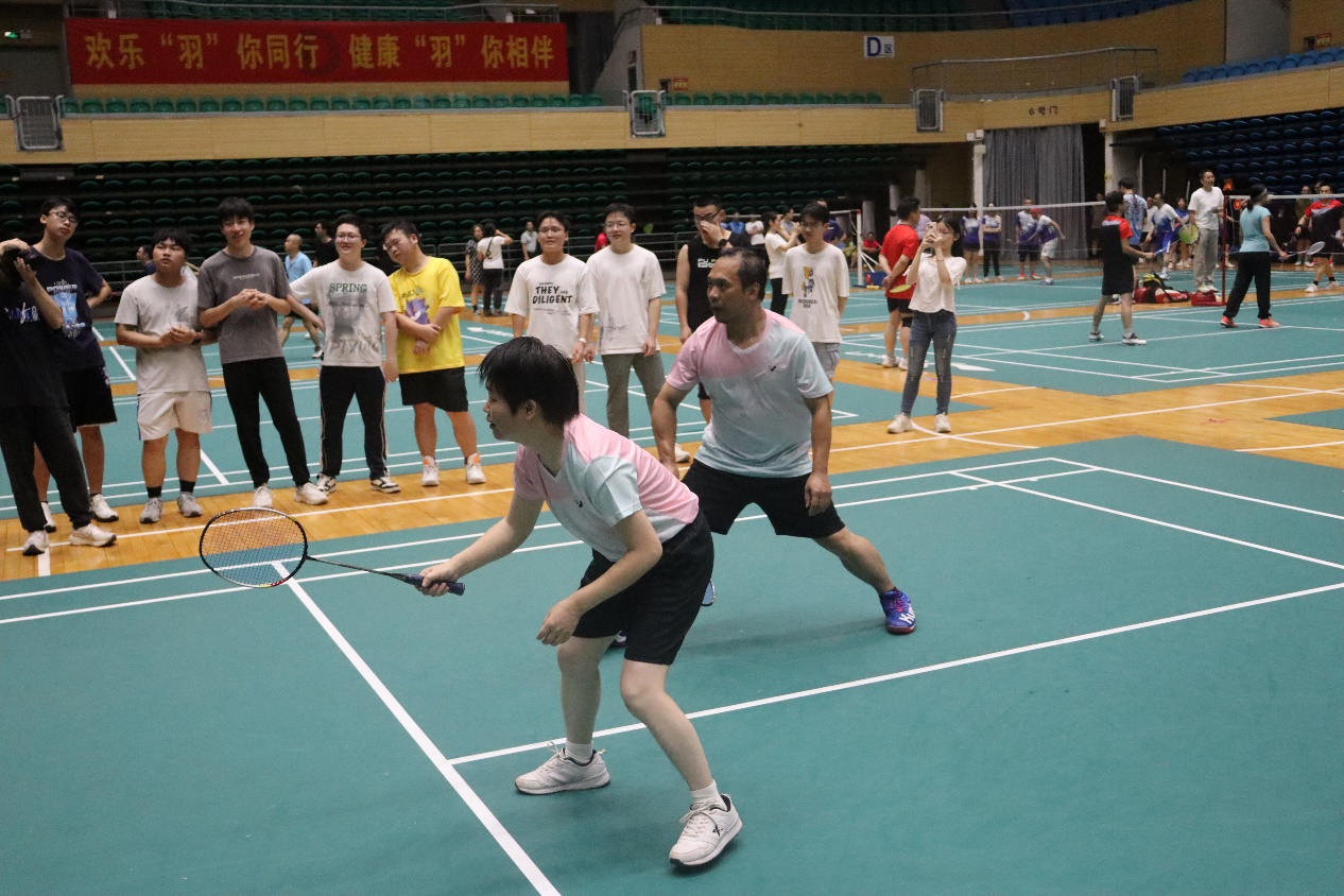 比赛以混合团体赛形式进行,设男双、女双和混双等项目,尽管老师们在年龄、身高等方面存在差异,但丝毫不影响赛场上的出色发挥。女双的联袂出击,男双的鱼跃扑救,混双的珠联璧合,队友们无声的默契,巧妙的配合,给在场观众带来一场场视觉盛宴,场外的学生啦啦队加油叫好此起彼伏。最终学院教职工羽毛球队以小组第一的成绩成功晋级第二阶段的比赛。