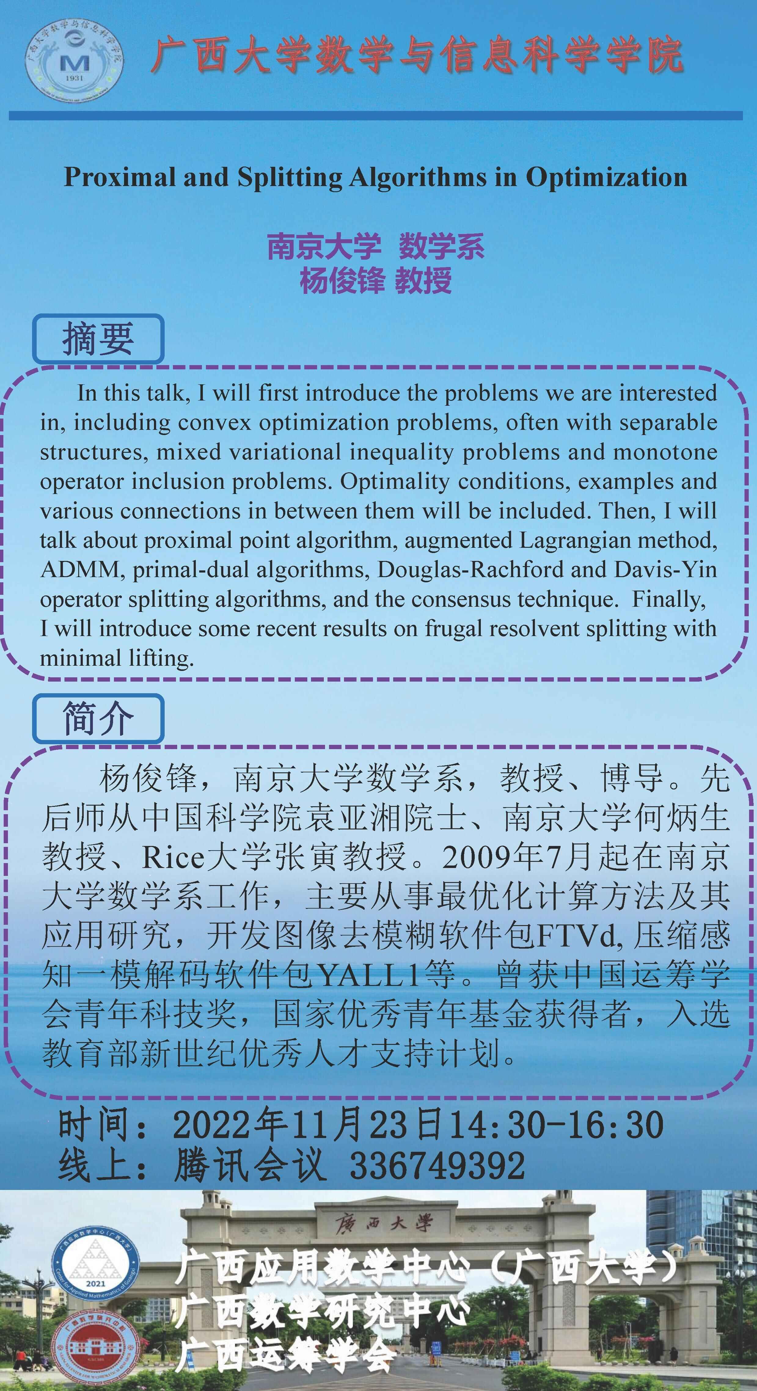 学术讲座:Proximal and Splitting Algorithms in Optimization