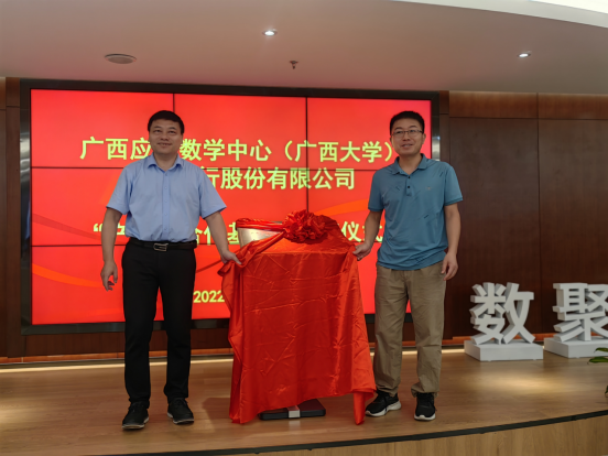 )常务副主任袁功林和桂林银行首席运营官王曙初共同为产学研合作基地揭牌。
