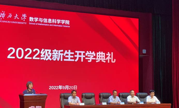 教师代表、信息与计算科学系主任金德泉副教授发言,希望新生们学好知识、学好技能、学会生活、学会做人,培养数学兴趣,笃定目标,充满信心,战胜困难,勇于承担起国家、家庭和社会的责任。老生代表、数信创培191班朱光洁发言,希望新生们树立学习报国远大志向,积极向党组织靠拢,把学习放在首位,在学习之余丰富自己的业余生活,加强体育和美育,全面发展。新生代表、2022级研究生王瑞斌发言,对开学以来学院的周到安排和老师们关心关怀表示感谢,表示将做一名兼具家国情怀、踏实求知和严谨求实的有心人、奋斗者和实干家。
