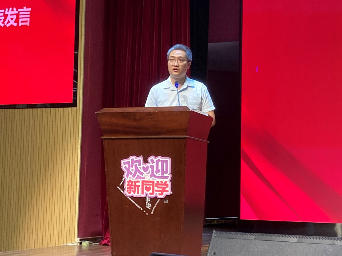 开学典礼上,郭真华院长代表学院对今年加入数信大家庭的112名本科生、59名硕士研究生以及19名博士研究生表示热烈的欢迎,对新生们即将开始新征程表达良好的祝愿。郭院长指出,学院去年获批数学学科一级博士点,今天顺利迎来学院历史上首批博士研究生,是学院数学学科进入高水平行列的重要体现,近年来,学院的学科建设、科学研究、人才培养正呈现出加速发展的良好势头,新生们的到来也必将为学院的发展注入了新的力量;进入到新的学习阶段,希望同学们转变学习方式和思考方式,注重学习能力的培养,发挥自身潜能,胸怀“国之大者”,坚定“国之所需,吾之所向”,敢于面对挑战,在数学领域成就人生的新高度;同时希望同学们珍惜大学生活,在经营好同学情、师生情中感悟大学的美好,走好大学每一步。