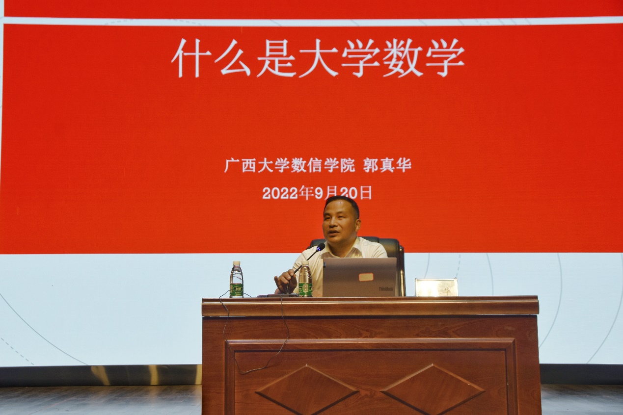 君武学者郭真华教授为全体新生讲授开学第一课。郭真华院长从“什么是大学”“什么是大学数学”“如何学好大学数学”三个层面,阐述了大学 “立德树人”历史使命的由来和内涵,详细介绍了大学数学作为基础学科的深刻含义、现阶段的重要地位以及学院当前“数学拔尖人才培养实验班-研究型人才”“数据科学实验班-应用型人才”两种数学人才的培养思路,并对在大学如何学习数学、理解数学向新生们提出了具体的指导建议。