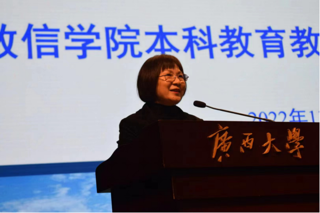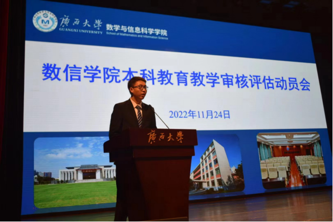 迎评工作,带动全体本科生积极投身到评估工作中,助力学校评估工作顺利完成,11月24日晚,数信学院在大礼堂召开迎接本科教育教学审核评估动员会,院长郭真华做动员讲话,院党委副书记郭海燕主持会议,数信创培191班朱光洁作为学生代表宣读倡议书。全体辅导员,全体本科生参加会议。