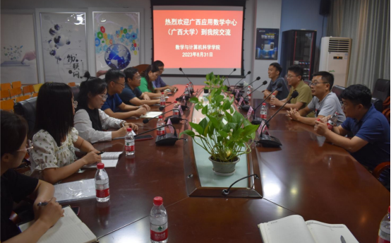 )常务副主任袁功林等中心团队成员前往广西科技师范学院数学与计算机科学学院洽谈交流,受到数学与计算机科学学院院长周优军、副院长曾箫潇、蒋林利,以及相关骨干教师等的热情接待。
