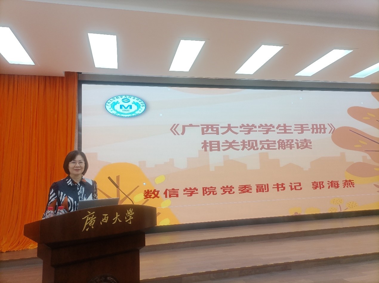 郭海燕副书记重点讲解了学生宿舍管理规定、学生考试违规处理办法、课程考勤制度、校园安全规范等h动画