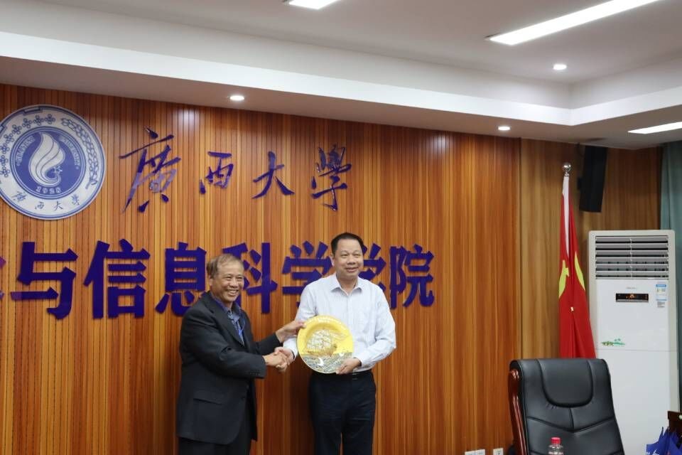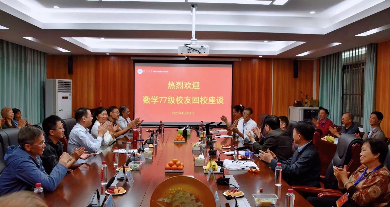 党委书记覃宪儒带领班子成员及校友工作相关人员,热烈欢迎数学77级校友重返母校,并隆重举行毕业40年座谈会。