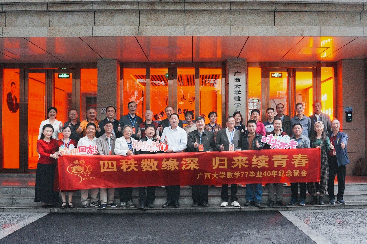 覃宪儒在致辞中,对重返母校的校友们表示热烈欢迎并致以诚挚祝福。他谈到,77级大学生的求学时光,是一个时代的记忆和符号,在新中国教育史与新中国发展史上具有非凡的意义。他衷心感谢校友们长期以来对学院发展建设的关心、关注和支持,并详细介绍了近年来学院在人才培养、学科建设、服务地方经济社会发展等方面取得的突出成效。他表示,学院将继续全面落实立德树人根本任务,以高站位、高标准、高质量谋划学院的发展建设工作,办好人民群众满意的数学教育。希望校友们常回家看看,多为学院发展建言献策,共同推进学院“双一流”建设。