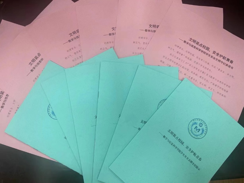 学生安全文明守纪提示》小册子,时常提醒自己做一名“重安全、讲文明、树正气、塑形象”的数信好青年。