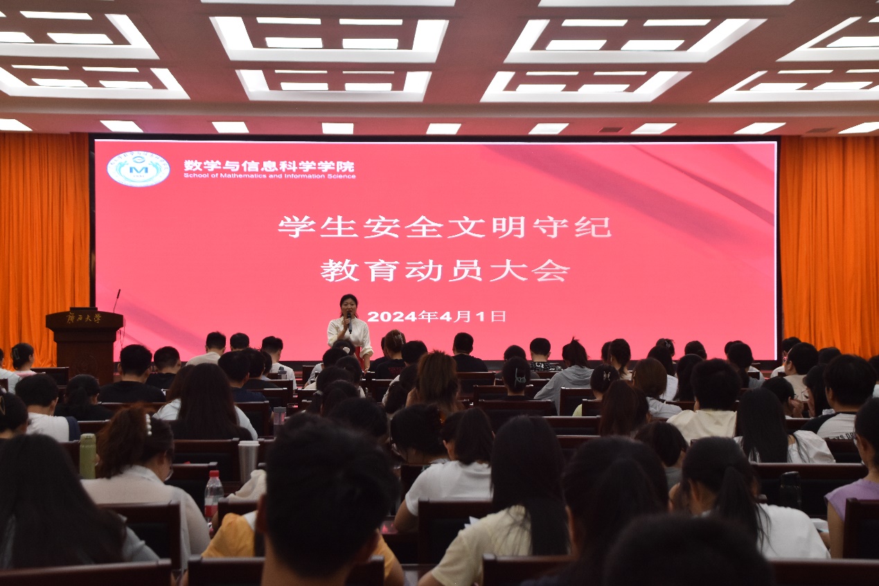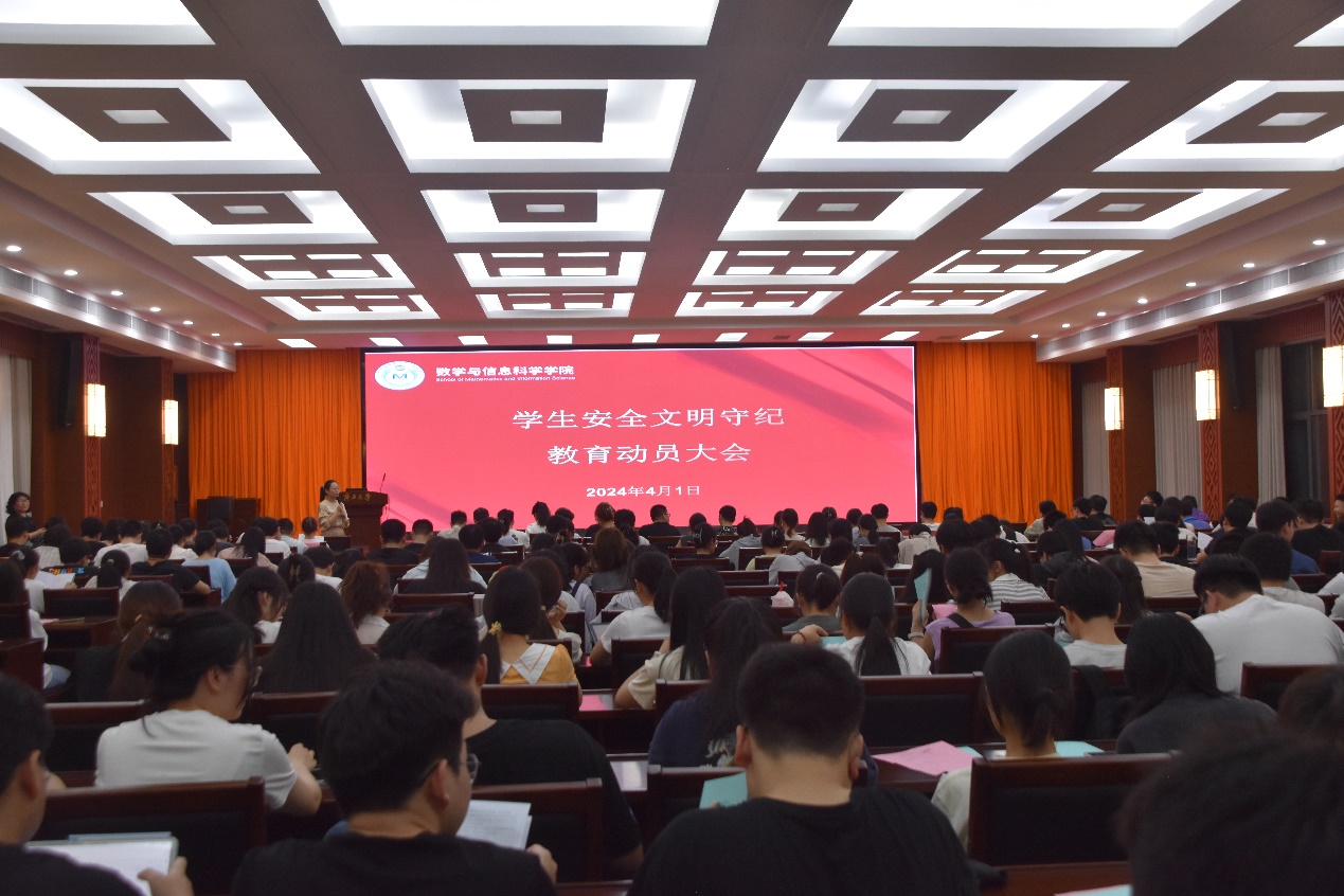 召开2024年春季学期学生“安全文明守纪”提示教育动员大会,大会由学院党委副书记唐旭彬主持,学工组全体辅导员和全体学生分年级参加各次大会。