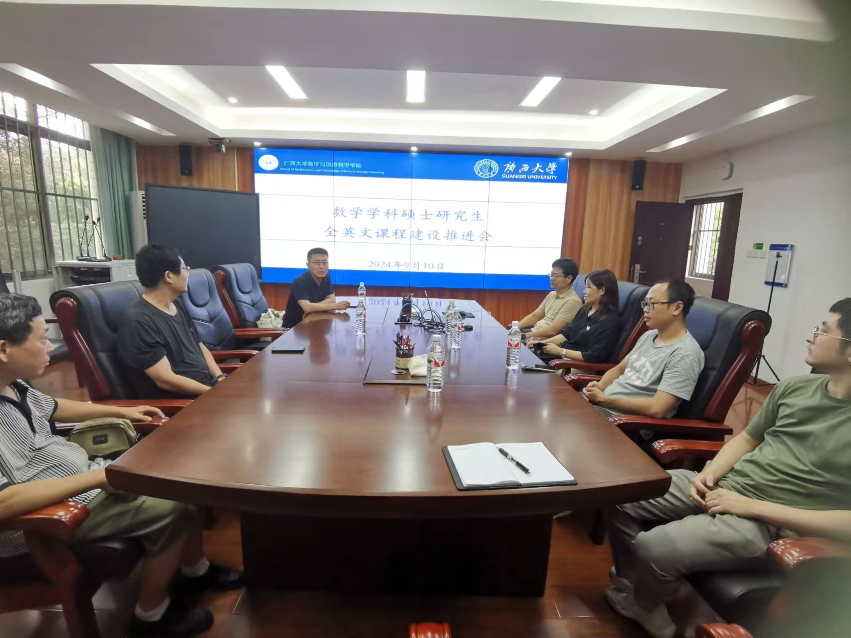 于9月10日下午在213会议室召开了数学学科硕士研究生全英文课程建设专项推进会议,会议由袁功林副院长主持,相关课程负责人参会。