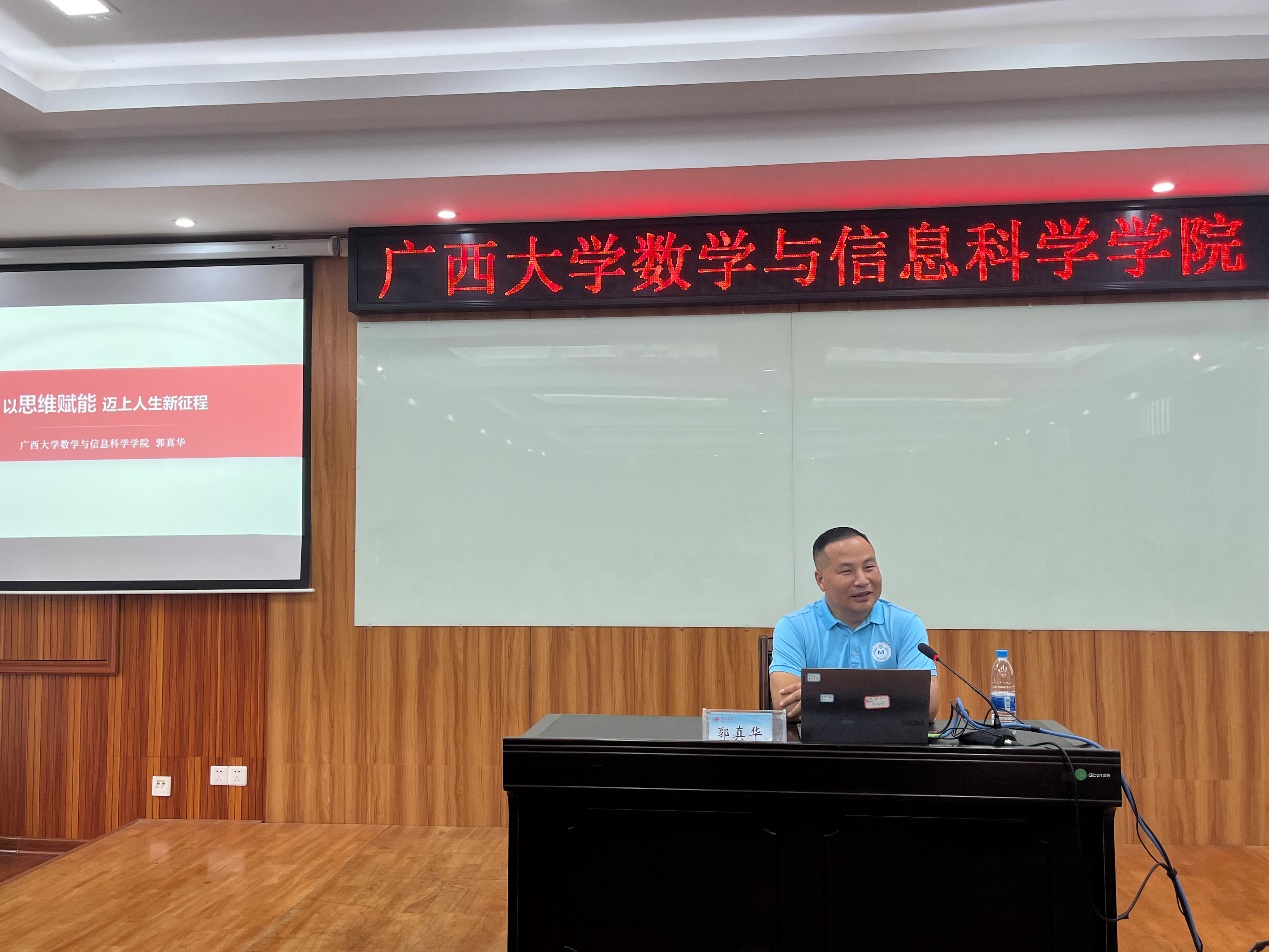 院长郭真华以“思维赋能,迈上人生新征程”为题给全体2024级新生讲授开学第一课。报告会由数信学院党委副书记唐旭彬主持。