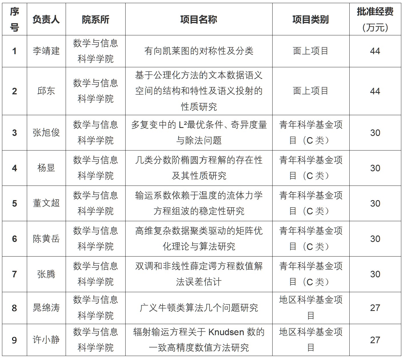 国家自然科学基金项目申请获得历史性突破,获批9项国家自然科学基金项目。其中,面上项目2项,青年科学基金项目(C类)5项,地区科学基金项目2项,资助经费达292万元,立项数量和经费总额均创历史新高。