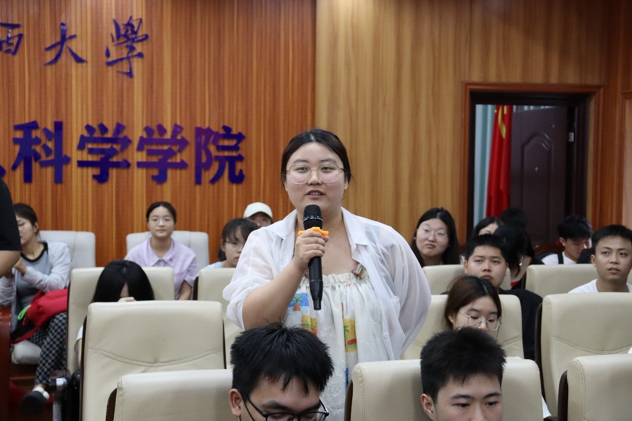 在大会的互动环节,同学们积极提问,老师们、学长学姐们耐心解答,特别是同学们困惑的“考研或就业如何决策”问题,唐旭彬从“我要考研与要我考研”的驱动力与发展后劲区别做了回答。现场氛围热烈,掌声阵阵。同学们纷纷表示,通过此次大会,他们对考研有了更深刻的认识,也更加坚定了自己的考研决心。