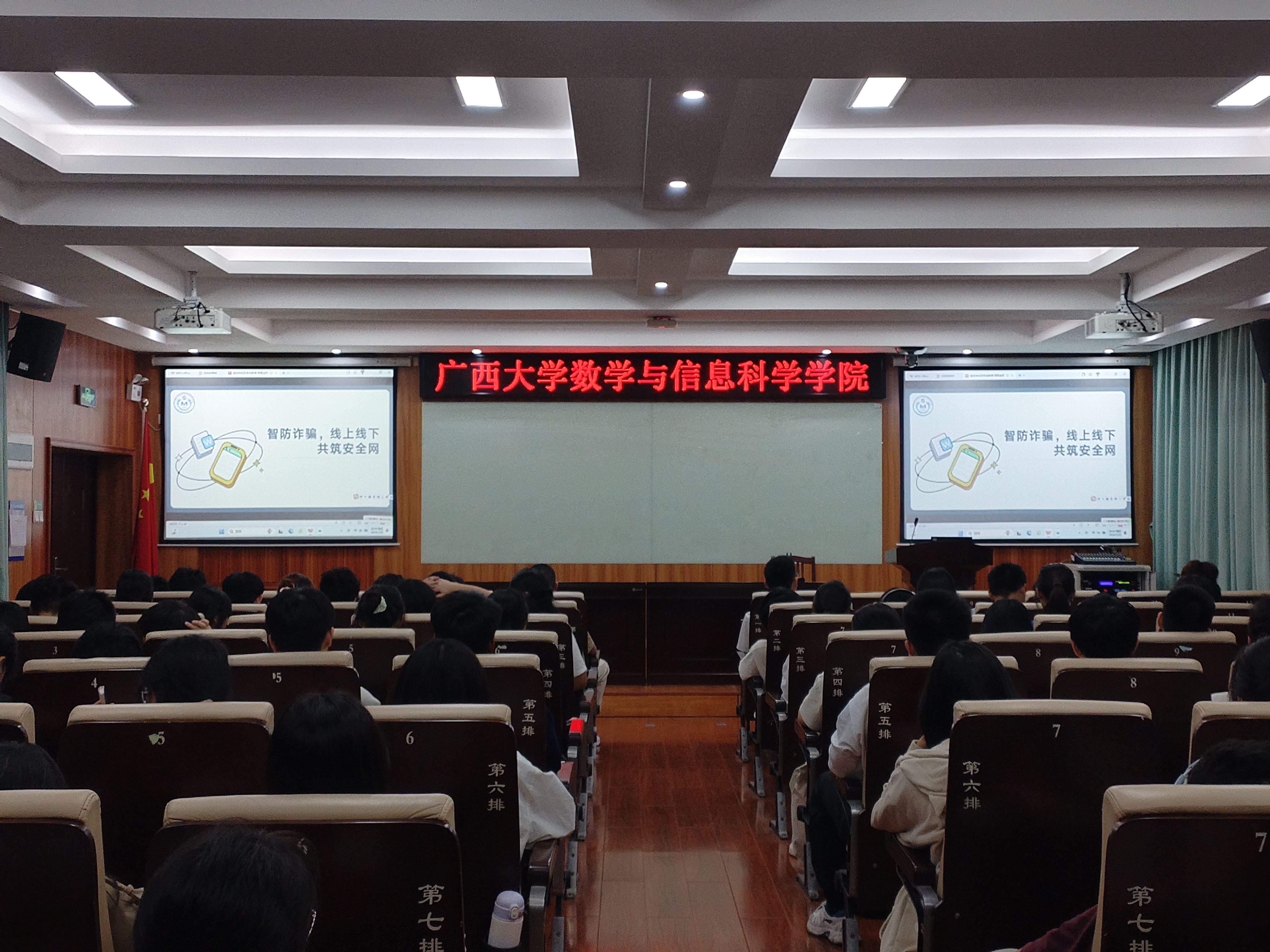 开展了以“智防诈骗,线上线下共筑安全网”为主题的教育活动。活动就常见诈骗类型,诈骗识别技巧,防诈骗实用策略等几个方面从线上线下两方面均展开讲解。此次主题教育活动进一步扩大了反诈宣传覆盖面,提高了学生反诈意识。