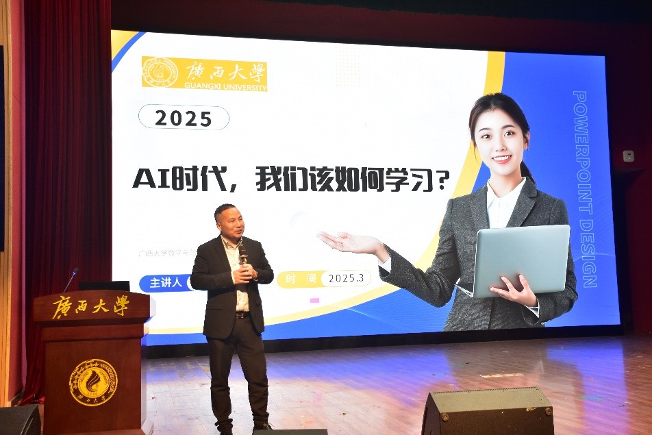 学院院长郭真华以“AI时代,我们该如何学习”为主题给学院全体大一、大二新生做专题讲座。他从带领学生们一起学习使用以ChatGPT、DeepSeek为代表的AI工具的直观方式入手,引导学生端正重塑知识获取方式的态度,从而理性认识人工智能技术对教育生态的颠覆性影响。他结合数学专业优势,并以如何合理利用DeepSeek为例,启发数学专业学生在技术浪潮中找准定位,坚定信心,培养数学思维,充分认识到“AI是辅助工具,而非替代者。数学思维的核心在于逻辑推演与创新突破,学生应善用AI处理重复性计算,同时聚焦高阶思维培养,如跨学科整合、批判性分析与学术探索。人工智能可以比人类更快计算、更准确记忆、更高效地处理信息,人类思维能触及抽象、哲学、艺术和情感的深邃领域,能超越物理世界的局限,无限创造。人类思维将永远高于人工智能,且不可能被任何智能完全复制。”他结合数学学习的实际特点,以实际案例启发同学们合理利用AI技术,提升数学学习效率,掌握复杂的数学概念,培养独立思考能力。最后,他建议同学们关注社会化能力与幸福生活能力的塑造,鼓励参与科创、艺术、体育等实践活动,实现个人全面发展。