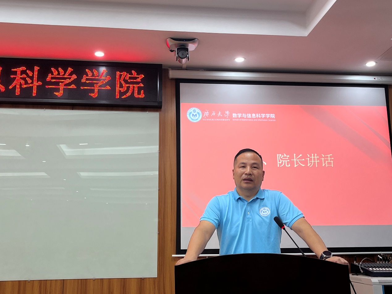 在一楼报告厅举行2024级新生入学欢迎仪式。数信学院院长郭真华、院党委副书记唐旭彬、副院长袁功林、副院长唐春明、副院长石志刚以及系主任、学工组辅导员、新生班主任和210名2024级新生一同参加了会议。入学仪式由数信学院党委副书记唐旭彬主持。
