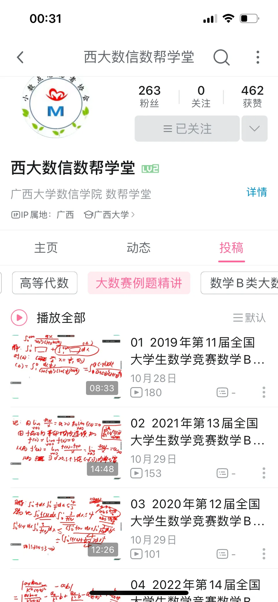 党委指导、学院团委实施,以学生骨干为主体的助学帮扶项目。自创建以来,该平台凭借其优质的大学数学解题思路,吸引了众多同学的关注。目前,累计关注人数260余人,视频总播放量突破25000次。