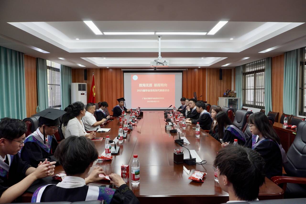 优秀校友张誉学习,学习他坚持以数学思维领航创业方向,扎根八桂大地艰苦奋斗;学习他心系母校,饮水思源,为师弟师妹做榜样。郭真华郑重寄语全体2025届毕业生校友,以榜样为明灯,传承奋斗薪火,未来亦不忘以赤诚之心反哺学校、学院。